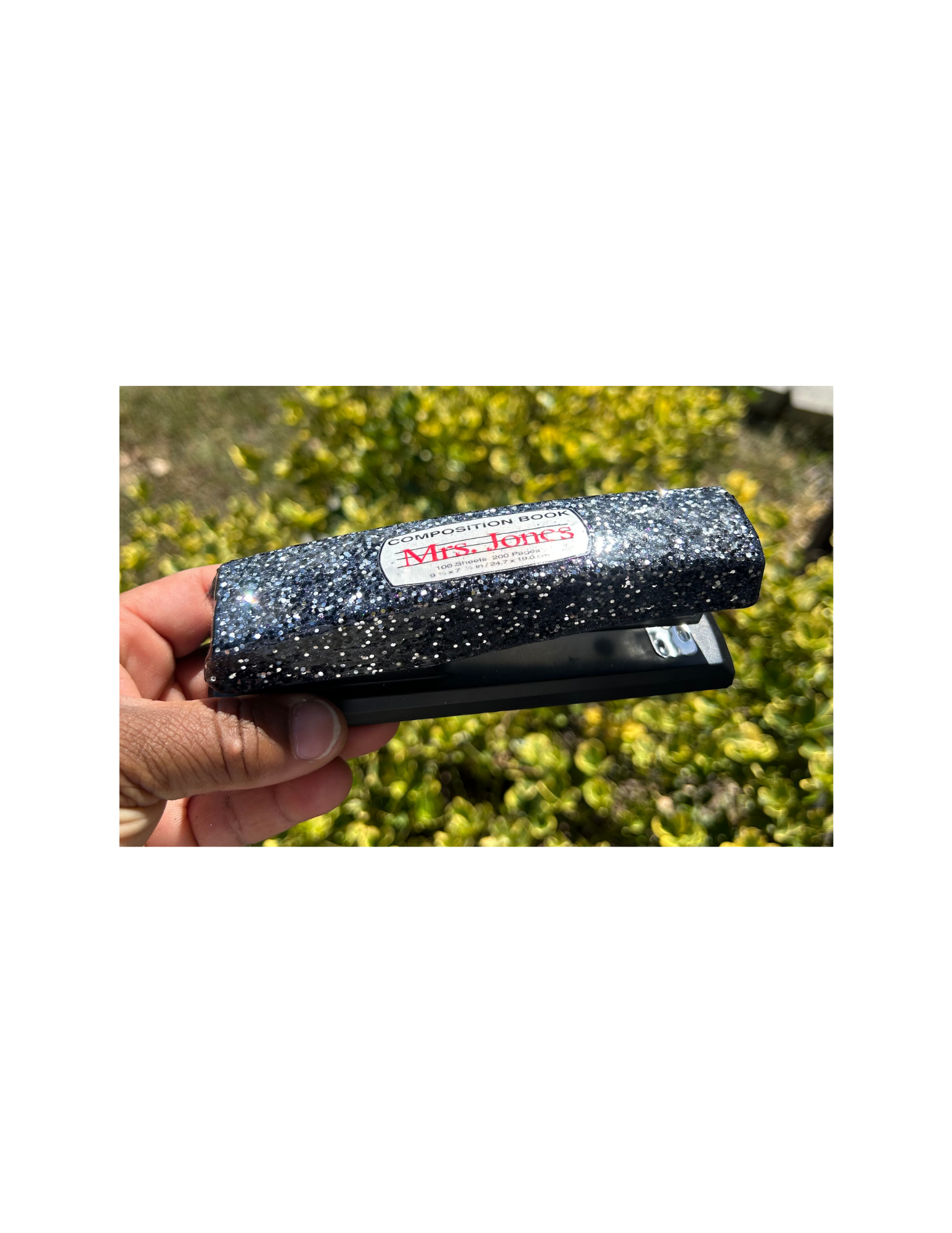 Designed to look like a classic composition notebook with a dazzling glitter twist, this stapler brings style and personality to your workspace while still delivering reliable performance for everyday use.